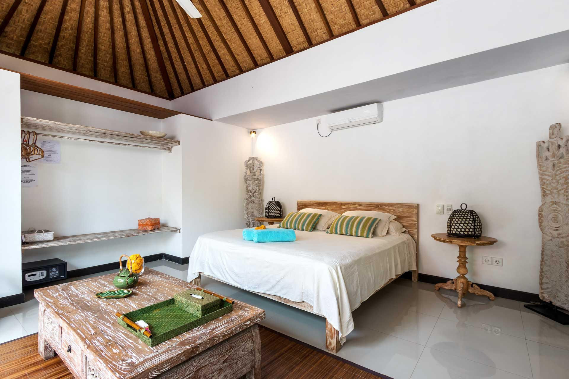 Villa Lenka harus menawarkan tiga kamar tidur yang hangat dan nyaman untuk para pengunjungnya. Kamar tidur pertama memiliki tempat tidur king yang nyaman dan nyaman. Furnitur bercat putih, karpet rotan, dan karya seni suku lokal seperti patung kayu dengan ukiran dan keranjang Bali meningkatkan nilai estetika ruangan hingga berlipat ganda. Kursi baca kayu nyaman. Bagian samping dengan dinding batu menambah tampilan alami ruangan. Kamar tidur yang cocok dengan kamar mandi pancuran hujan dan wastafel. Lemari pakaian yang luas dan brankas untuk menyimpan barang-barang berharga Anda menambah kenyamanan dan kemudahan selama Anda menginap. Kamar tidur kedua vila juga memiliki tempat tidur king yang nyaman. Kamar yang menghadap ke taman ini menawarkan pemandangan yang eksotis saat Anda menikmati secangkir teh hangat di pagi hari atau membaca buku favorit Anda di kursi baca yang ada di kamar. Kamar tidur ketiga vila terbuka langsung ke sisi kolam renang. Anda dapat bersenang-senang di kolam renang dan taman kecil di sampingnya. Furnitur kayu berwarna putih, patung karya seni lokal dan keranjang Bali, meja tengah dan lampu samping adalah beberapa hal yang meningkatkan nilai estetika ruangan hingga berlipat ganda.