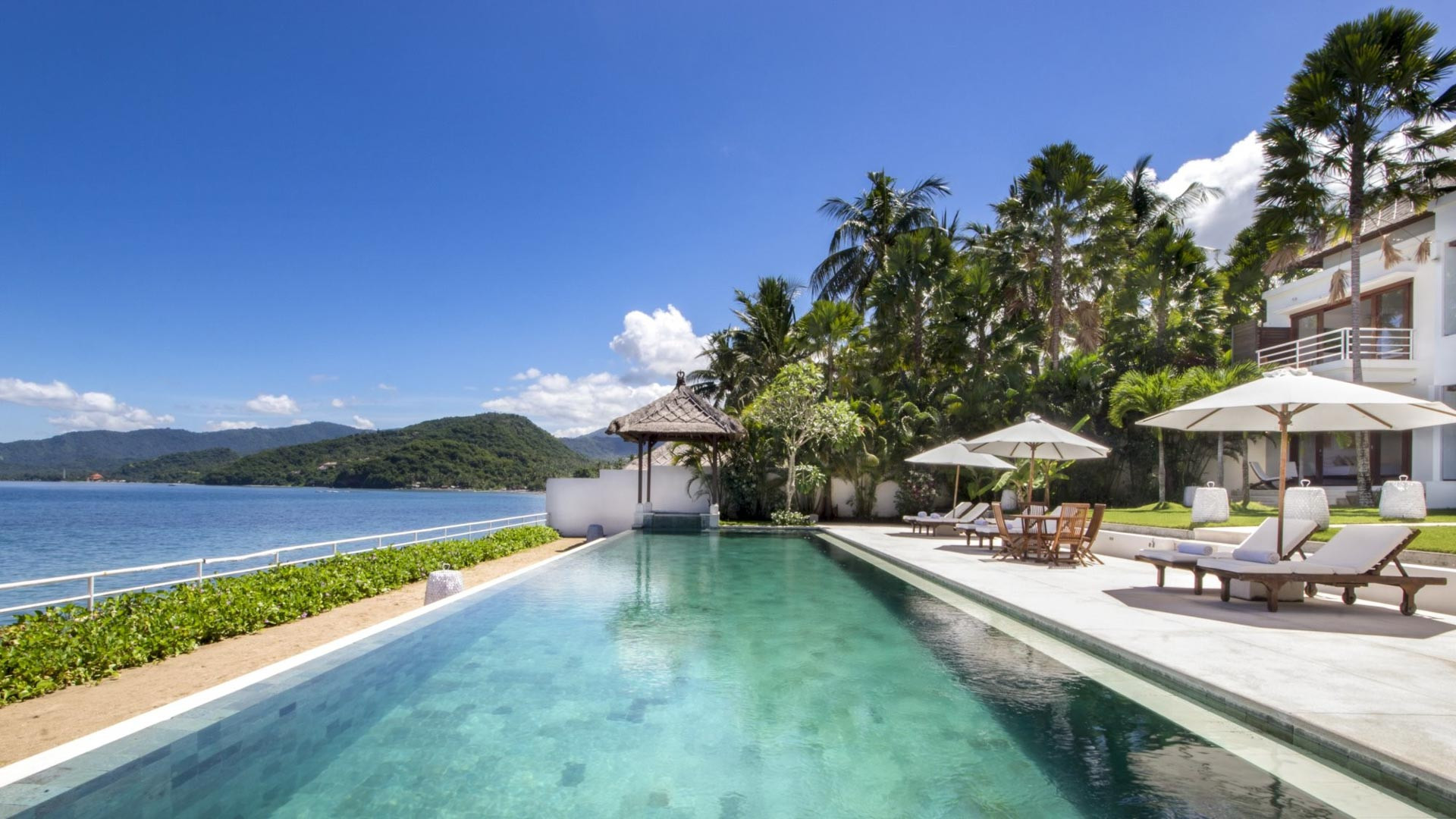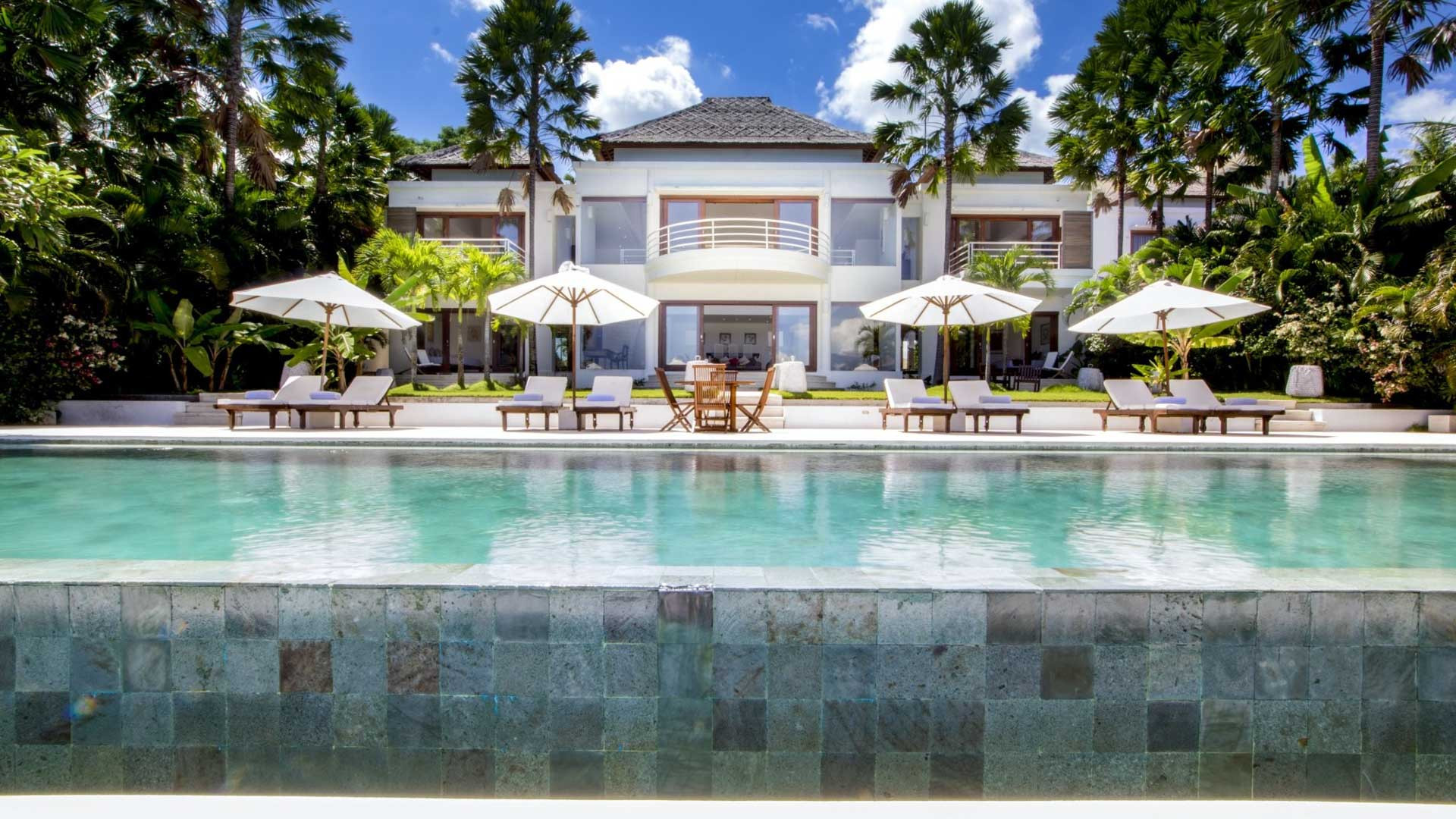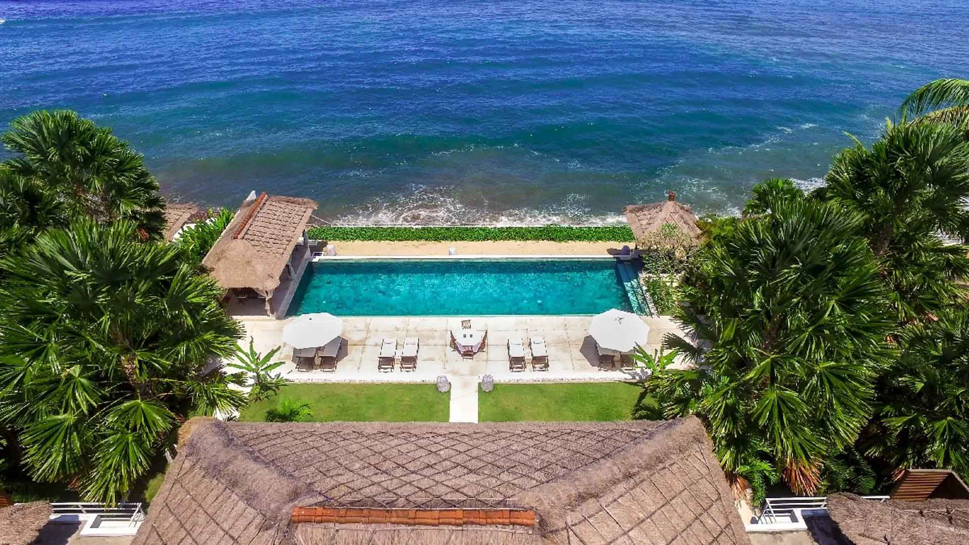 Vila ini memiliki kolam renang sepanjang 20 meter yang menawarkan pemandangan panorama teluk. Kolam renang diapit oleh kursi berjemur dan payung. Di salah satu ujung kolam, ada bale beratap jerami dan di ujung lainnya, area makan outdoor yang teduh.