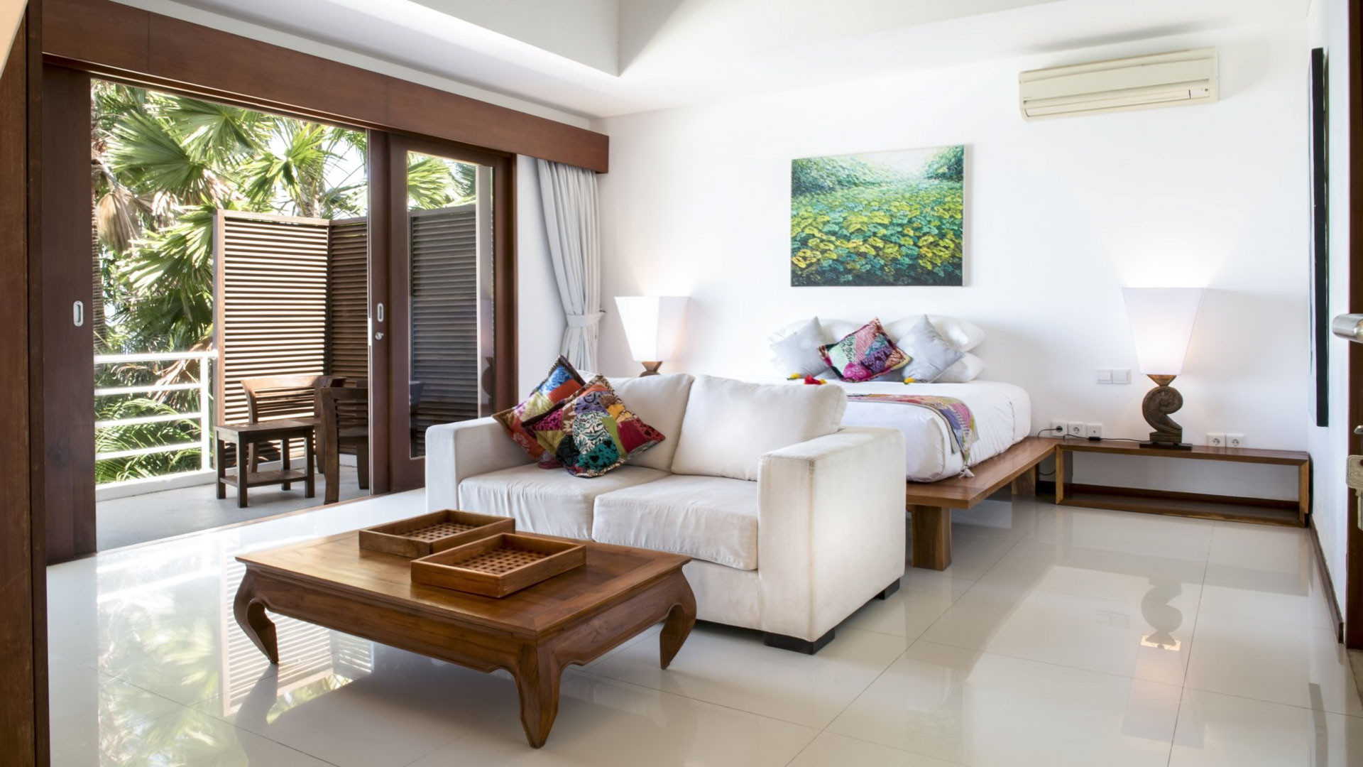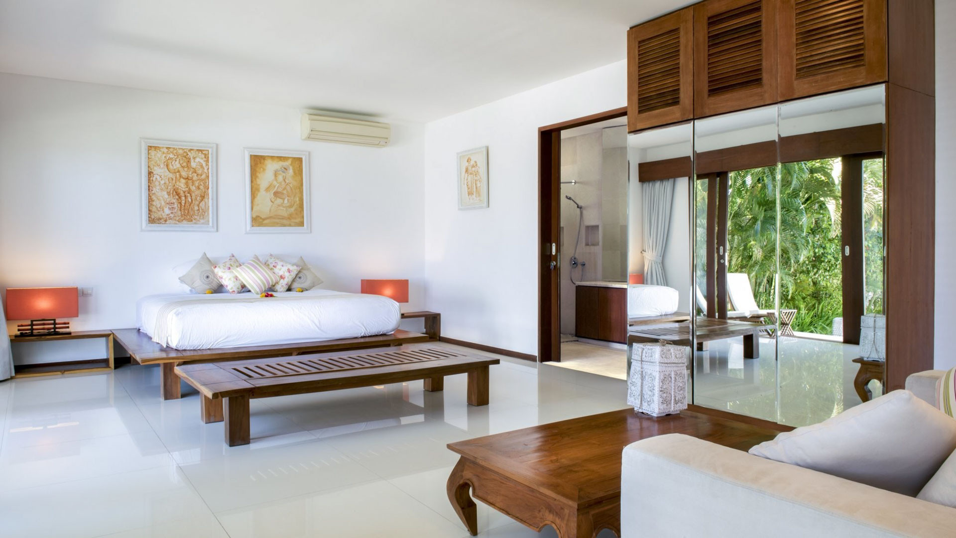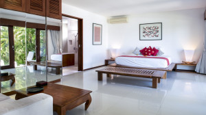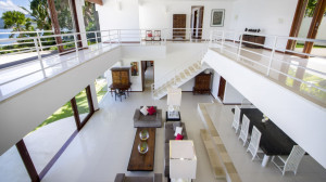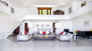 Ruang tamu memiliki sofa kulit putih yang dikelilingi oleh karya seni yang dipilih dengan indah. Ruang tamu menawarkan pemandangan kolam renang melalui pintu kaca. Meja makan berada di belakang sofa ruang tamu dan dapat menampung hingga delapan tamu. Terdapat juga ruang makan outdoor dan dapur berperabotan lengkap di vila.