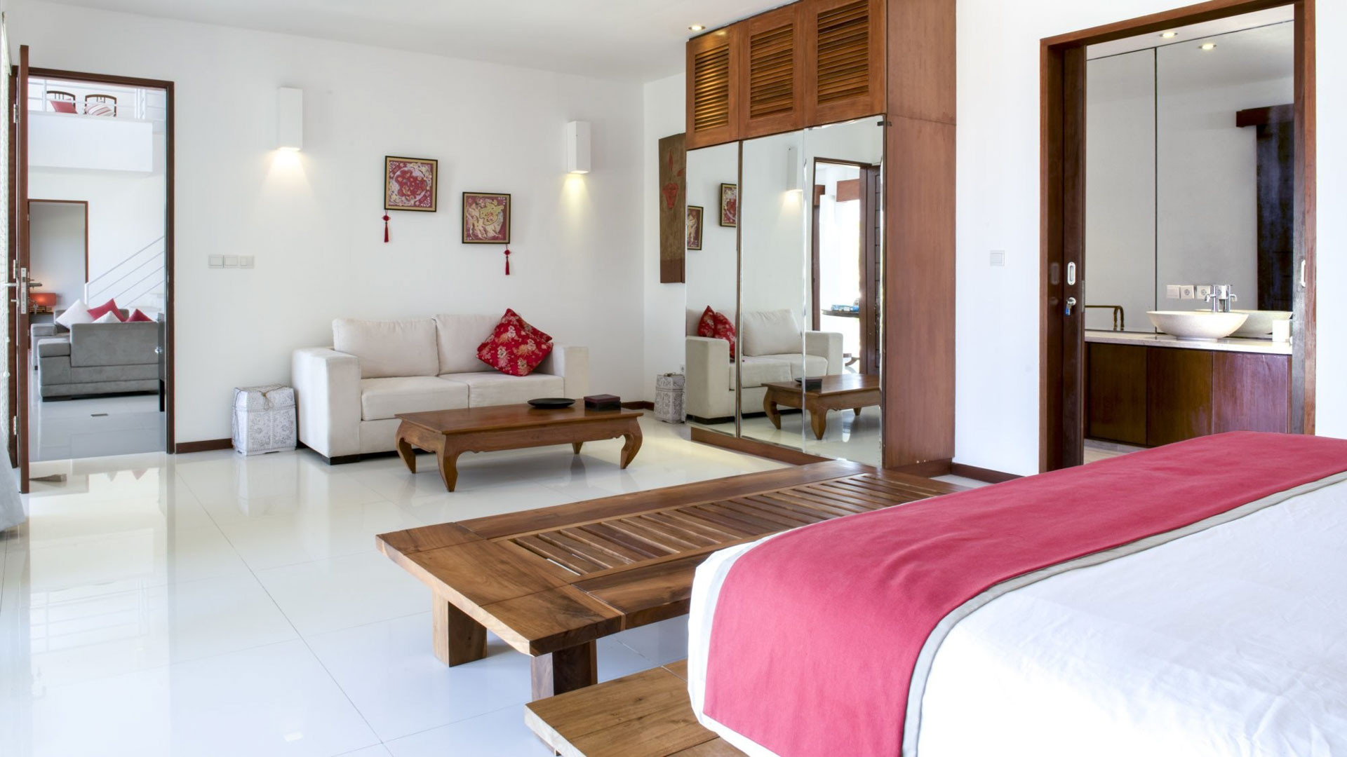 Villa Lucie memiliki empat kamar tidur, semuanya dilengkapi dengan tempat tidur king. Ada dua kamar tidur di lantai dasar dan dua kamar tidur di lantai atas. Kamar tidur pertama berada di lantai dasar dan dilengkapi dengan tempat tidur king dan kamar mandi dalam dengan shower. Kamar tidur kedua juga berada di lantai dasar dan dilengkapi dengan tempat tidur king dan kamar mandi dalam dengan shower. Kamar tidur ketiga berada di lantai atas dan dilengkapi dengan tempat tidur king, balkon, dan kamar mandi dalam dengan shower. Kamar tidur keempat juga berada di lantai atas dan dilengkapi dengan tempat tidur king, balkon, dan kamar mandi dalam dengan shower.