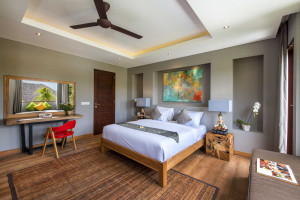 Dua kamar tidur utama yang mewah di Denting Villa dilengkapi dengan baik dengan tempat tidur king, TV layar datar besar, tempat duduk dekat jendela, meja tulis, dan lemari besar. Suite utama terbuka langsung ke kolam renang dan memiliki penerangan yang baik serta berventilasi sepanjang hari. Kamar tidur ber-AC juga memiliki kamar mandi en-suite dengan wastafel batu alam, dan bathtub batu berdiri sendiri.