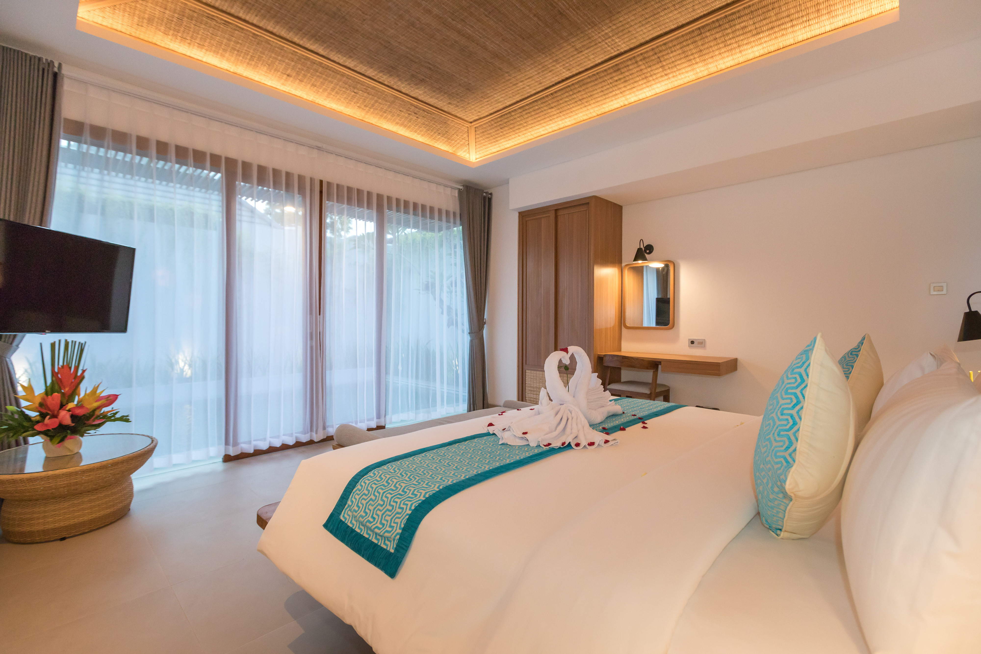 Gaya keanggunan tropis seperti itu digambarkan dalam setiap detail, mulai dari langit-langit jerami hingga kualitas ornamen dekorasi yang bagus. Sarapan gourmet gratis & layanan keramahtamahan 24 jam dengan keamanan kompleks juga disediakan untuk memastikan keamanan dan kepuasan Anda.