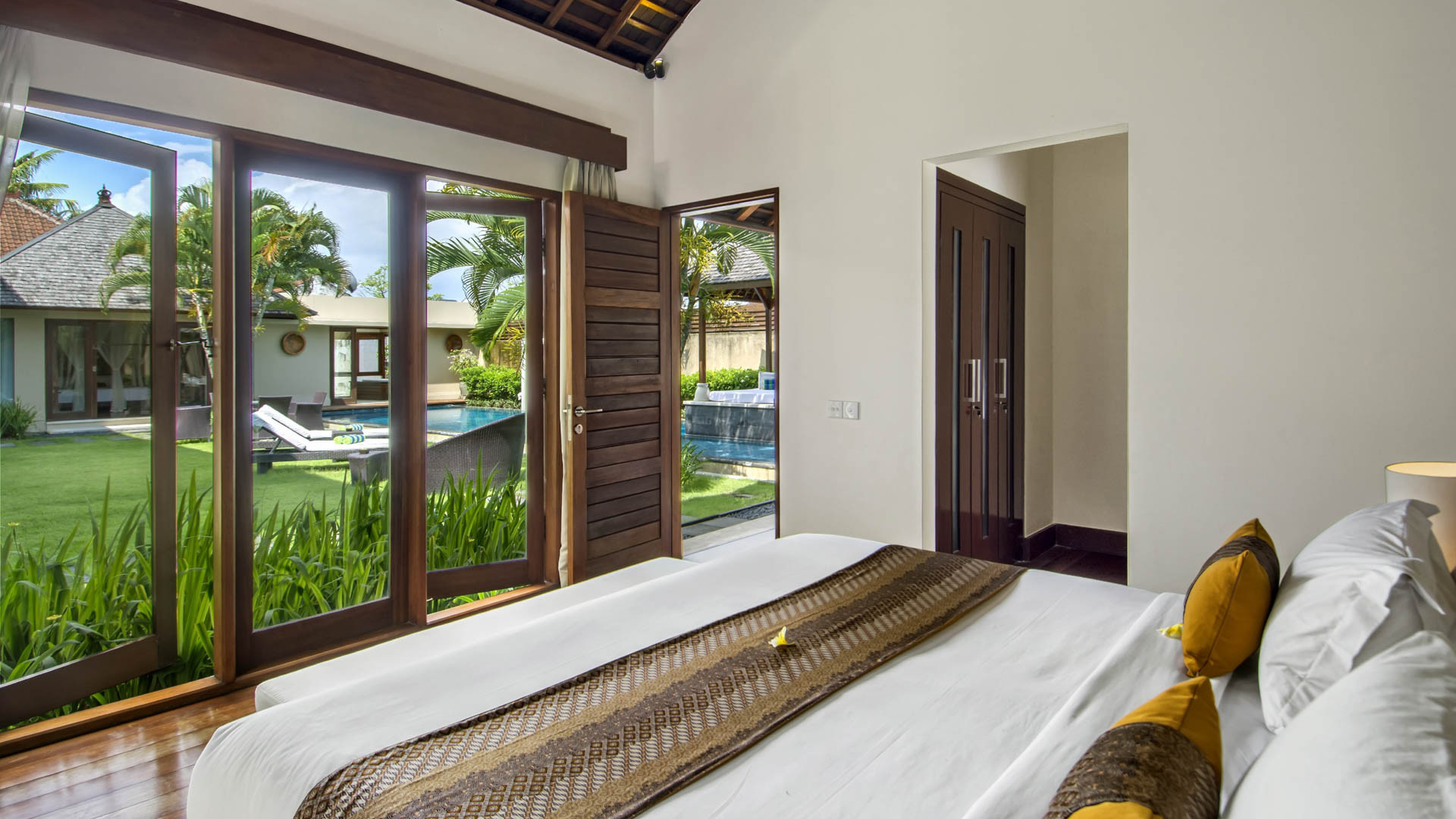 Mii Estate memiliki total 8 suite vila mewah, 5 di kompleks vila Mii Besar dan 3 di Mii Tama. Semua kamar tidur dilengkapi dengan kipas langit-langit dan AC dan desain interior pedesaan dan sangat elegan. Semua kamar tidur memiliki tempat tidur king, kamar mandi en suite pribadi, lemari pakaian yang luas, brankas, dan TV layar datar dengan pemutar DVD. Master suite di Villa Mii Besar mengalahkan semuanya dengan ruang media pribadi yang dilengkapi dengan TV layar datar 65 inci dan kursi santai kulit serta kamar mandi bergaya spa yang cantik dengan bathtub batu dan taman seperti zen dengan air yang mengalir di dalam kolam. 2 kamar tidur adalah area liburan mewah yang dirancang untuk keluarga dengan anak-anak, dilengkapi dengan tempat tidur double besar dan tempat tidur twin untuk menampung hingga 4 orang. Salah satu kamar ini berada di belakang Villa Mii Besar dan yang lainnya berada di lantai pertama Villa Mii Tama, menyatu dengan teras dengan pemandangan sekitar yang indah. Di kamar mana pun Anda menginap, Anda berhak untuk puas.