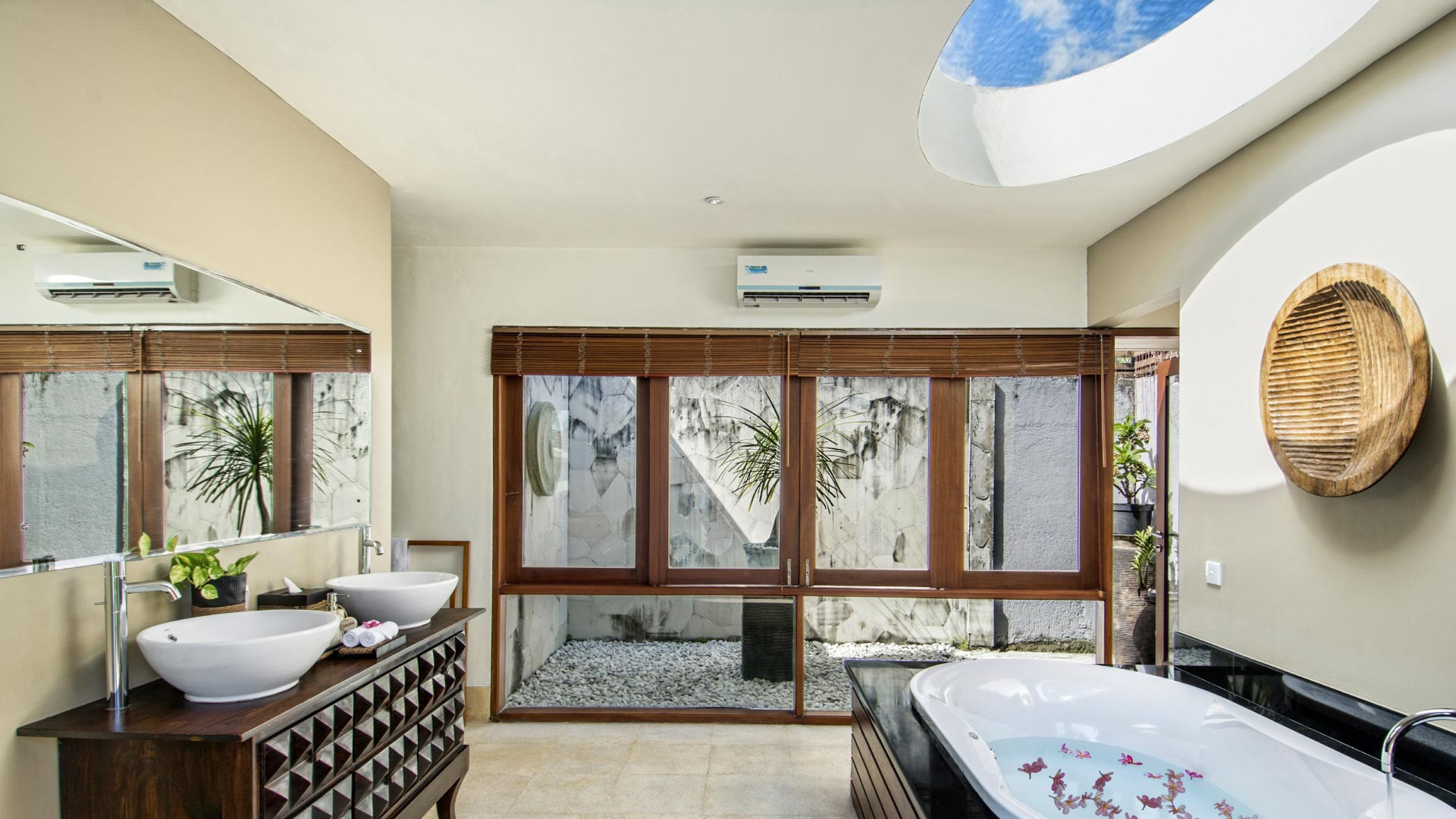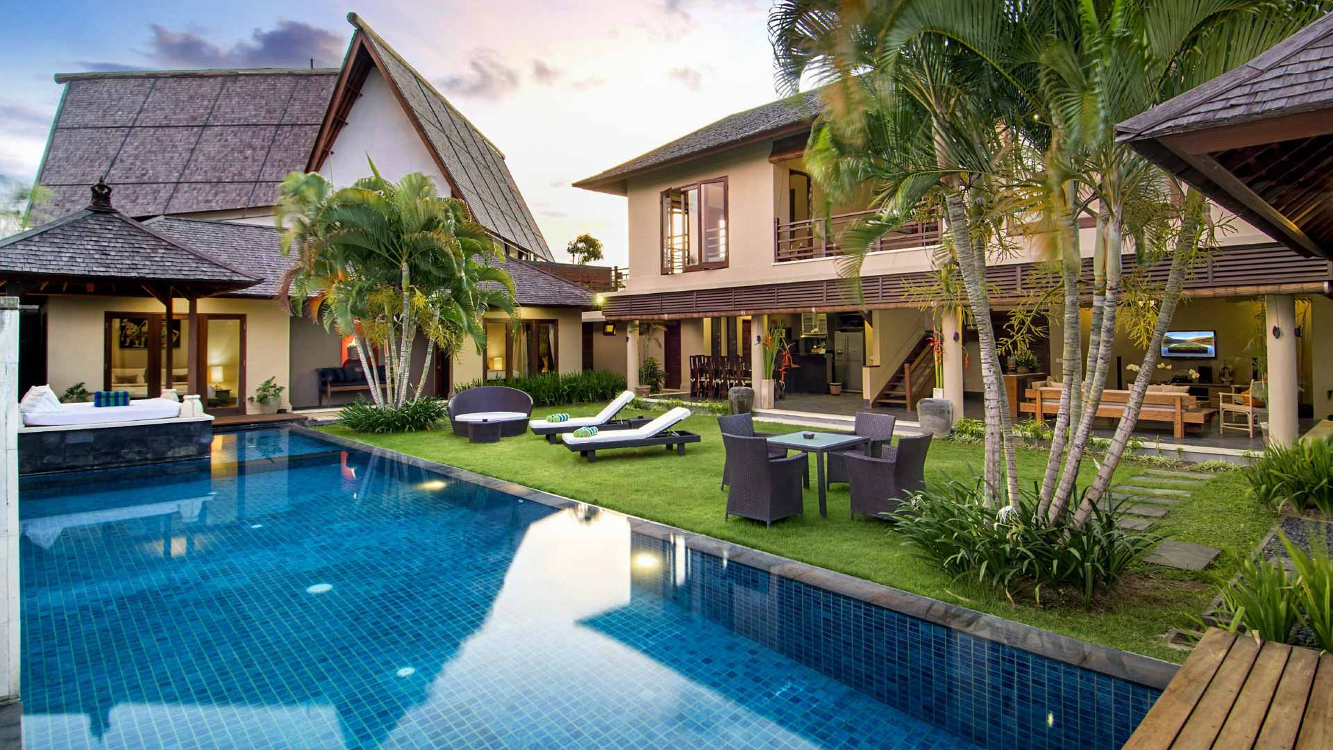 Mii Estate yang menakjubkan terdiri dari Villa Mii Besar dengan 5 kamar tidur dan Villa Mii Tama dengan 3 kamar tidur, terletak di kawasan yang tenang di area jantung Seminyak. Kedua vila ini memiliki kolam renang pribadi dan vila terhubung dengan jalur tropis. Dengan total 8 kamar tidur dan ruang yang luas, kompleks bersama ini dapat menampung rombongan perjalanan hingga 16 tamu, menjadikannya tempat peristirahatan liburan yang sempurna untuk liburan keluarga besar atau liburan menyenangkan bersama sekelompok besar teman yang ingin dekat. satu sama lain, melakukan banyak hal bersama dan masih memiliki banyak ruang pribadi. Properti luar biasa ini memiliki ruang tamu terbuka dan desain interior zen yang apik. Jika Anda mencari tempat yang dekat dengan pantai, restoran yang luar biasa, kafe yang bagus, dan beberapa tempat belanja yang sangat bagus, maka Anda tidak akan menemukan yang lebih baik daripada Mii Estate.