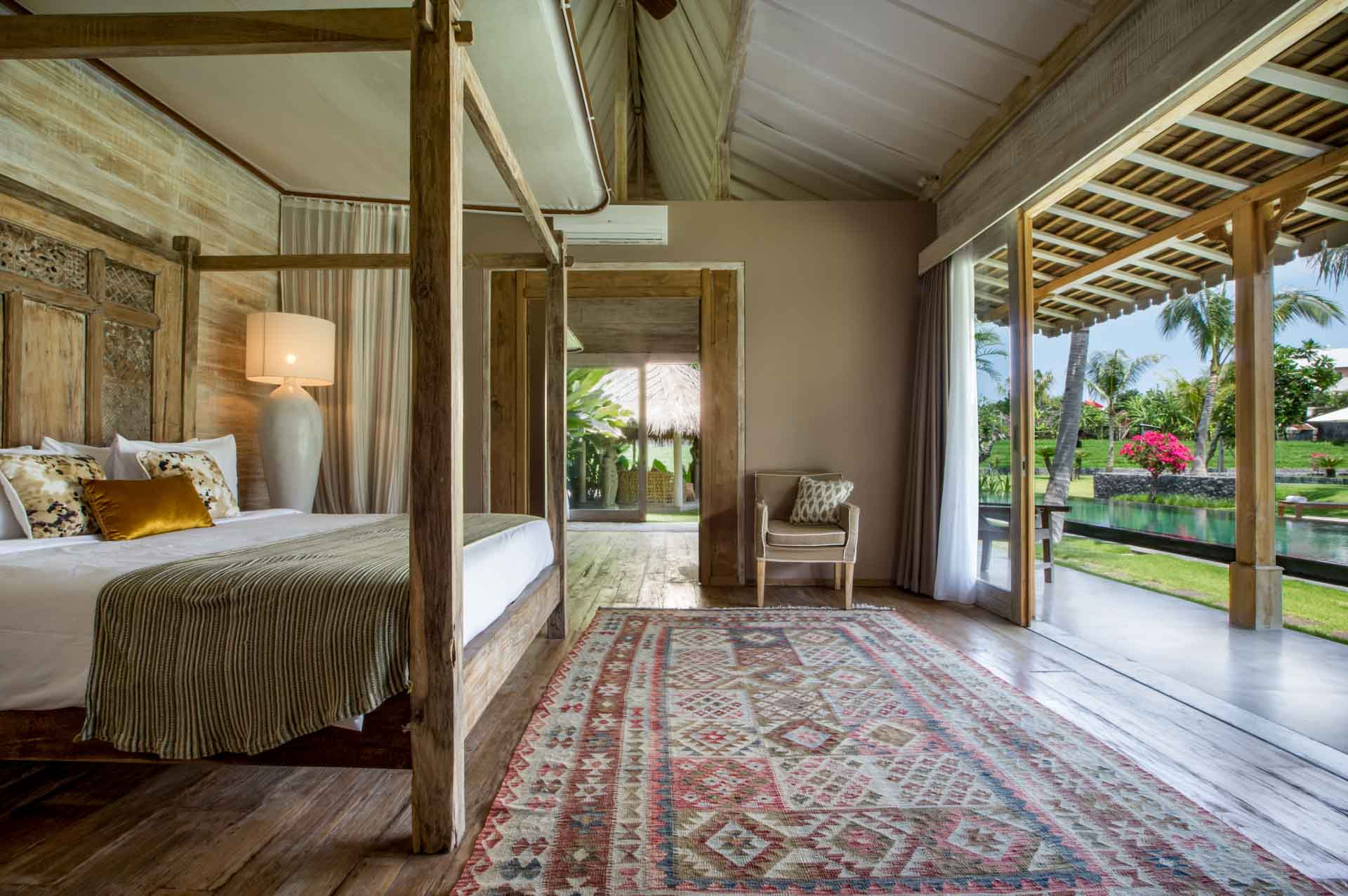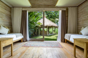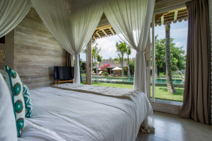 Villa Mannao ditata dalam gaya paviliun Bali, dengan empat bangunan terpisah untuk kamar. Paviliun kamar tidur utama yang luas terletak di sebelah paviliun ruang tamu utama, dilengkapi dengan kipas angin yang luas dan suite ber-AC dengan tempat tidur king bertiang empat, kelambu, seprai putih, dan selimut tipis. Menghubungkan ke kamar tidur utama adalah kamar anak-anak dengan dua tempat tidur twin, ideal untuk setiap orang tua yang bepergian dengan anak kecil atau bayi, karena tempat tidur bayi tambahan dapat disediakan. Pemandangan kolam renang 20 meter, taman dan sawah. Ruang ganti memiliki banyak ruang lemari pakaian, jubah mandi gratis, dan brankas. Kamar mandi besar adalah pengalaman tersendiri: wastafel ganda, bak batu bulat, pancuran dan keranjang untuk pernak pernik pribadi adalah sentuhan yang bagus.