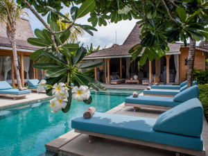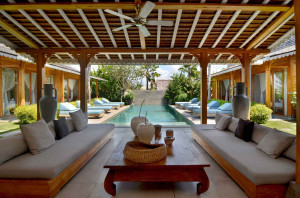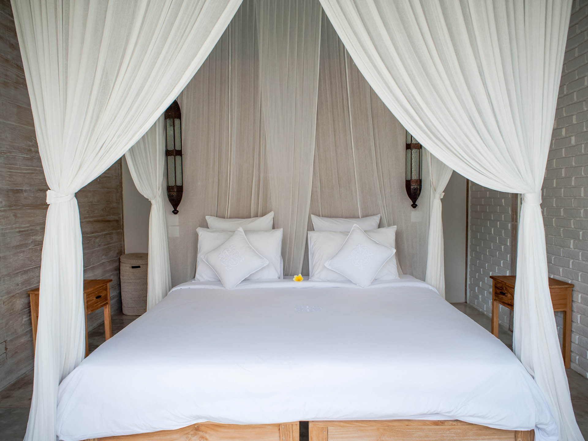 Vila ini memiliki empat kamar tidur – bertempat di dua paviliun terpisah di kedua sisi kolam renang. Dua dari kamar tidur ini memiliki tempat tidur king size, sedangkan dua kamar tidur lainnya memiliki tempat tidur twin yang digabung menjadi satu. Semua kamar tidur juga memiliki kamar mandi khusus dengan pancuran hujan. Meskipun dua kamar mandi ini memiliki bathtub outdoor yang besar. Semua kamar tidur juga terbuka ke kolam renang.