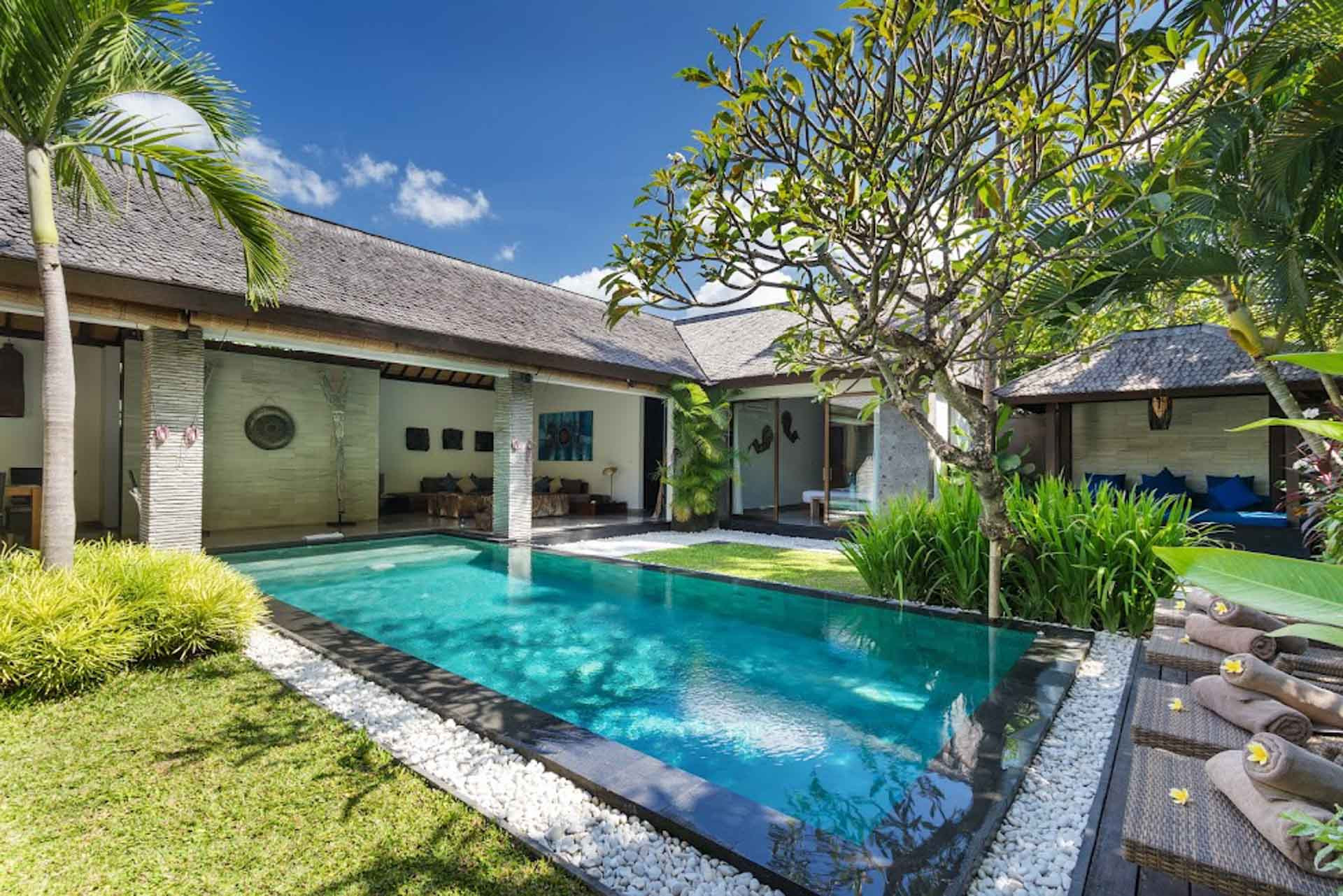 Berada tegak lurus dengan paviliun ruang tamu dan ruang makan di Villa Namaskara Blue adalah kolam renang sepanjang 9 meter yang dibatasi oleh taman yang terawat baik di kedua sisinya. Tepi kolam yang terletak di dalam ruangan diapit oleh dinding batu Bali untuk menambahkan efek dramatis pada ruang yang sederhana. Dengan pohon-pohon palem yang menjulang tinggi dan dedaunan hijau, taman adalah sudut vila yang sehat dan menyegarkan untuk relaksasi, peremajaan, dan berjemur. Kursi berjemur yang ditemukan di taman di samping kolam renang sangat ideal untuk meregangkan tubuh dan bekerja di atas cokelat! Tidur siang di daybed yang ada di bale untuk bangun dengan energi dan siap untuk malam hari.