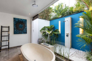 Dirancang dalam struktur 'Rumah Panjang' linier, Villa Namaskara Blue di Seminyak adalah rumah tradisional Bali dengan empat kamar tidur yang merupakan bagian dari kawasan pribadi Namaskara Villas – rumah bagi empat vila individu. Dengan warna biru khas yang ditemukan di sekitar vila, vila ini menampilkan arsitektur tradisional dengan langit-langit alang-alang yang miring dan membuat kamar tetap sejuk dan nyaman. Merayakan ruang tamu terbuka, tata ruang ruang tamu dan ruang makan yang luas sekaligus menyegarkan dan menenangkan indra! Lokasinya tak terkalahkan karena terletak di kawasan Petitenget yang ramai, dekat dengan pantai, restoran, bar, dll.